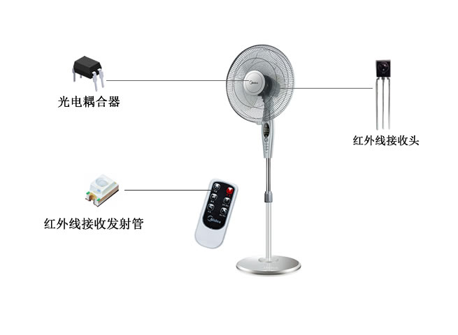 电风扇可应用光耦、红外发射管、红外接收管等电子元器件。